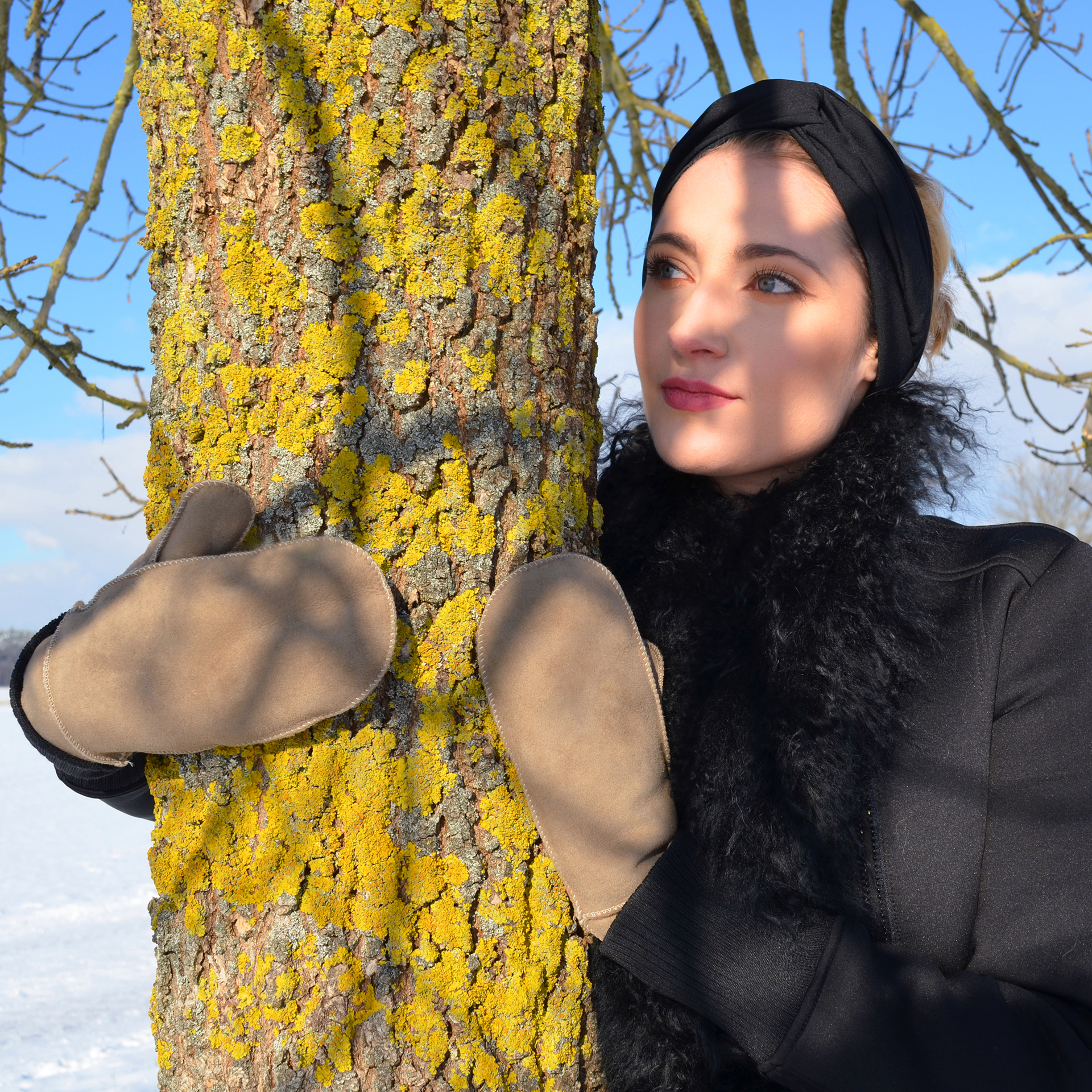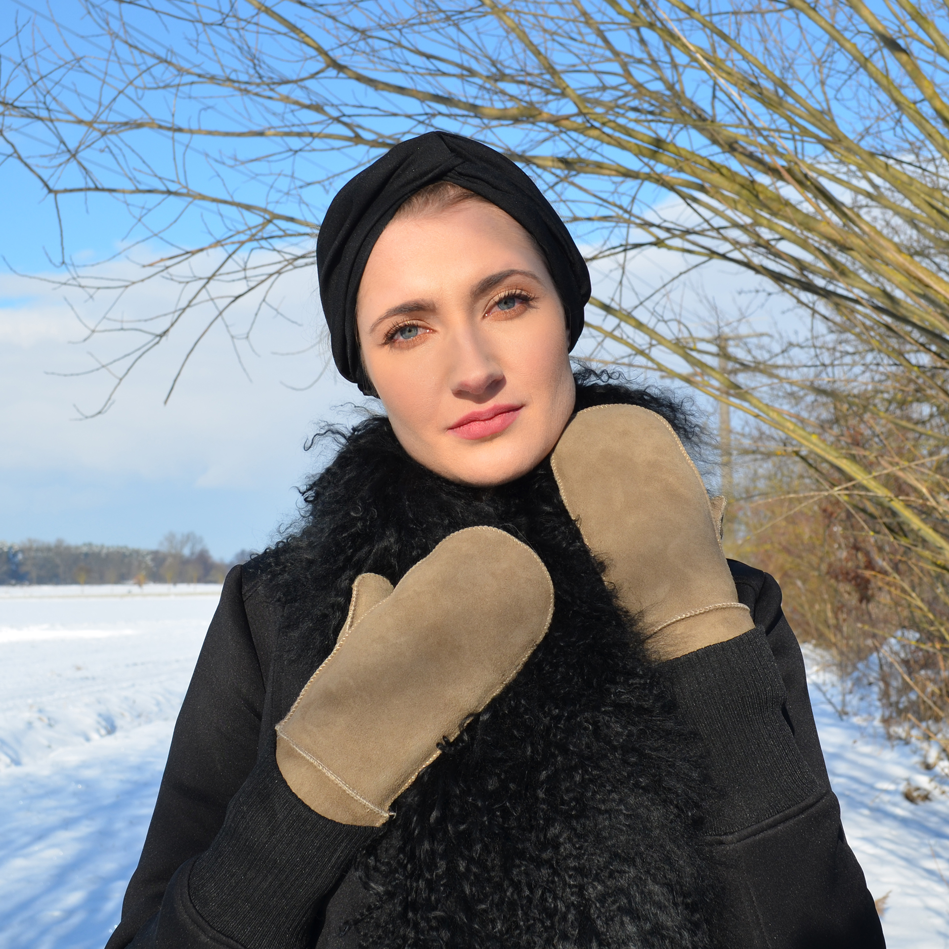 Die Fäustlinge werden aus dichten und weichen Lammfell gefertigt.